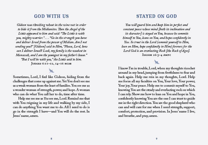 If you've ever felt overwhelmed by the worries and cares of life. . .This lovely book will walk you through encouraging, inspiring, heartfelt, calming prayers that will help your beautiful soul discover true freedom in an ever-growing relationship with the heavenly Father, the Anxiety-Reliever Himself. Every heartfelt prayer begins with thought-provoking scripture selection and is meant to be a worry-free beginning to your very own personal prayer time. A worry-free life. . .is just a prayer away!
